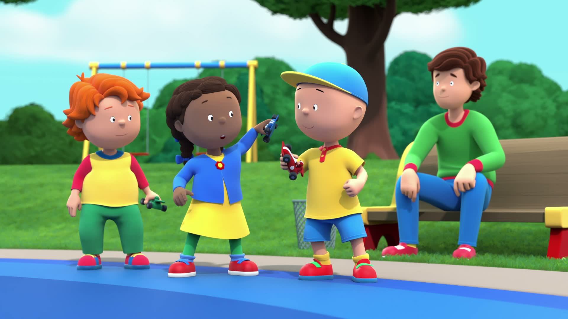 After Rosie bullies Caillou, he embarks on an imaginative adventure of epic proportions: confronting a giant who shows up at an important car race and causes chaos.