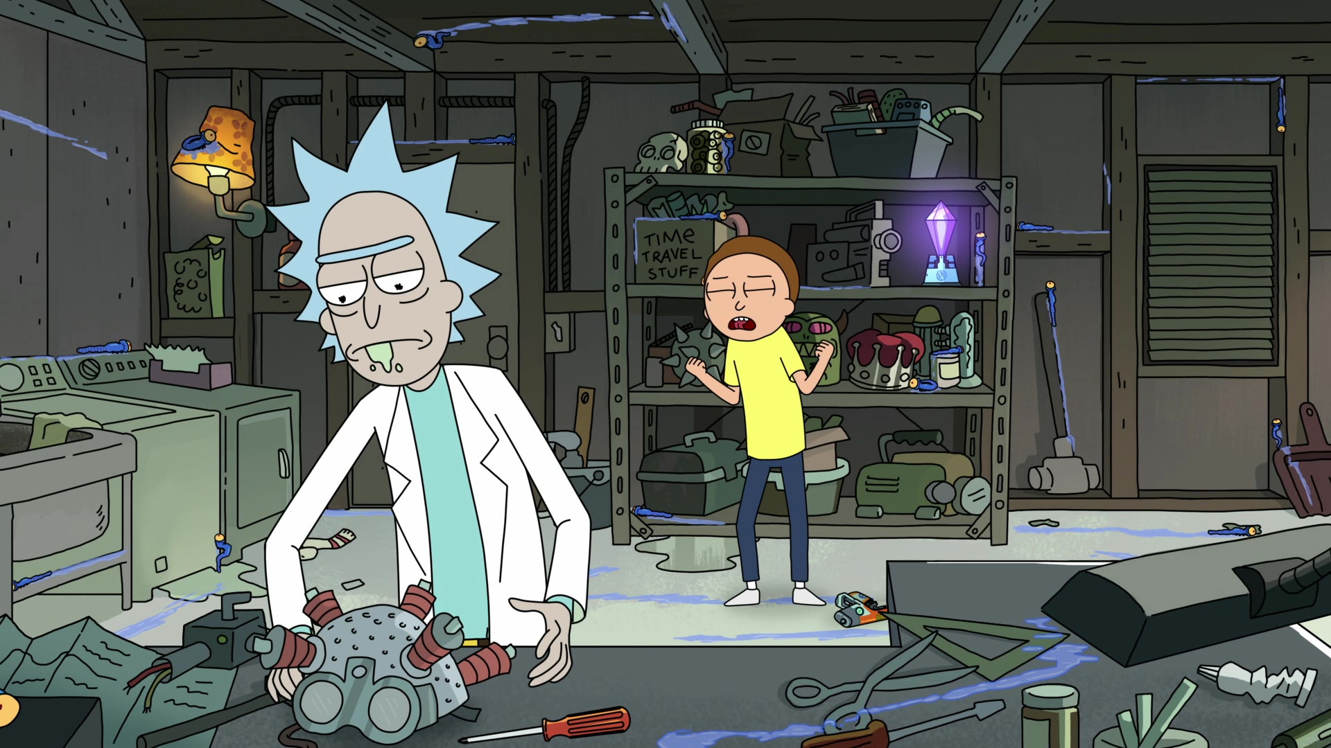 Follows a sociopathic genius scientist who drags his inherently timid grandson on adventures across the universe.