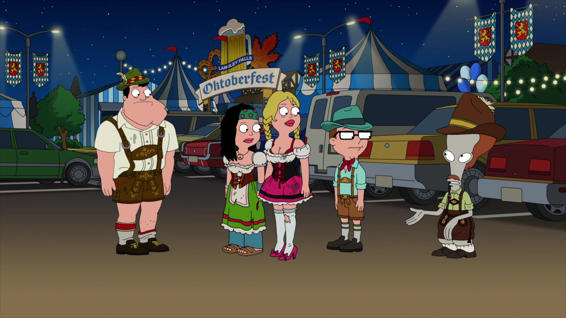 The series focuses on an eccentric motley crew that is the Smith family and their three housemates: Father, husband, and breadwinner Stan Smith; his better half housewife, Francine Smith; their college-aged daughter, Hayley Smith; and their high-school-aged son, Steve Smith. Outside of the Smith family, there are three additional main characters, including Hayley's boyfriend turned husband, Jeff Fischer; the family's man-in-a-goldfish-body pet, Klaus; and most notably the family's zany alien, Roger, who is "full of masquerades, brazenness, and shocking antics."