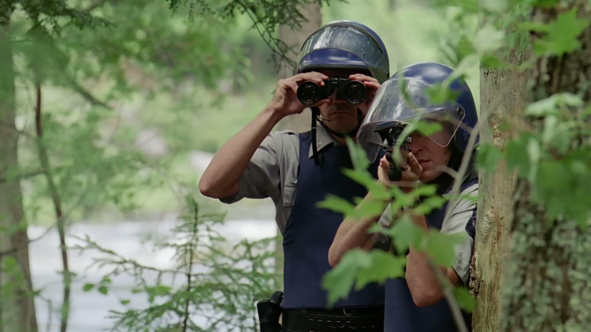 Three escaped convicts take a group of deaf students hostage.