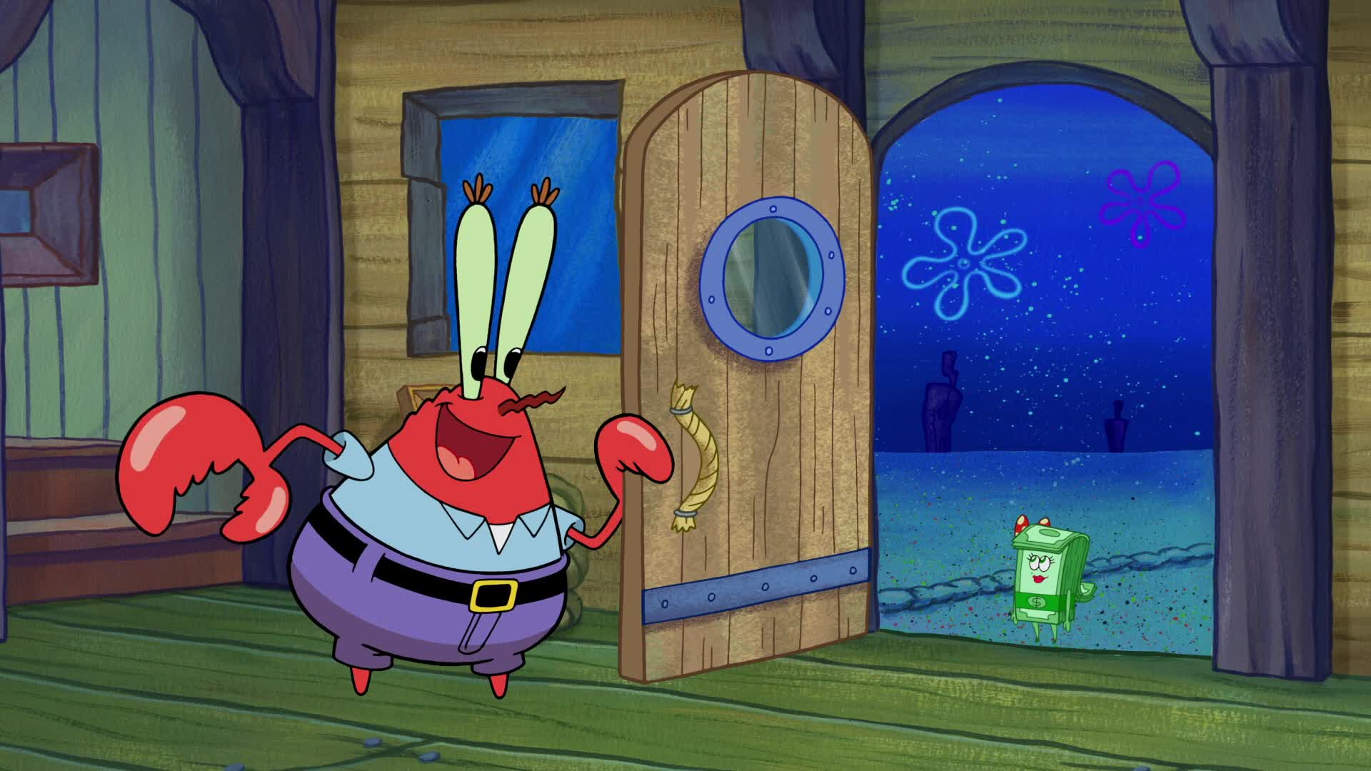 Deep down in the Pacific Ocean in the subterranean city of Bikini Bottom lives a square yellow sponge named SpongeBob SquarePants. SpongeBob lives in a pineapple with his pet snail, Gary, loves his job as a fry cook at the Krusty Krab, and has a knack for getting into all kinds of trouble without really trying. When he's not getting on the nerves of his cranky next door neighbor Squidward, SpongeBob can usually be found smack in the middle of all sorts of strange situations with his best buddy, the simple yet lovable starfish, Patrick, or his thrill-seeking surfer-girl squirrel pal, Sandy Cheeks.
