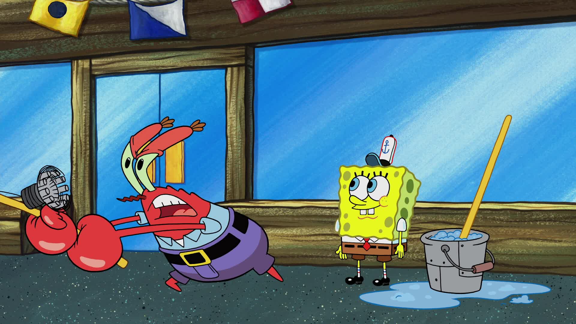 Deep down in the Pacific Ocean in the subterranean city of Bikini Bottom lives a square yellow sponge named SpongeBob SquarePants. SpongeBob lives in a pineapple with his pet snail, Gary, loves his job as a fry cook at the Krusty Krab, and has a knack for getting into all kinds of trouble without really trying. When he's not getting on the nerves of his cranky next door neighbor Squidward, SpongeBob can usually be found smack in the middle of all sorts of strange situations with his best buddy, the simple yet lovable starfish, Patrick, or his thrill-seeking surfer-girl squirrel pal, Sandy Cheeks.