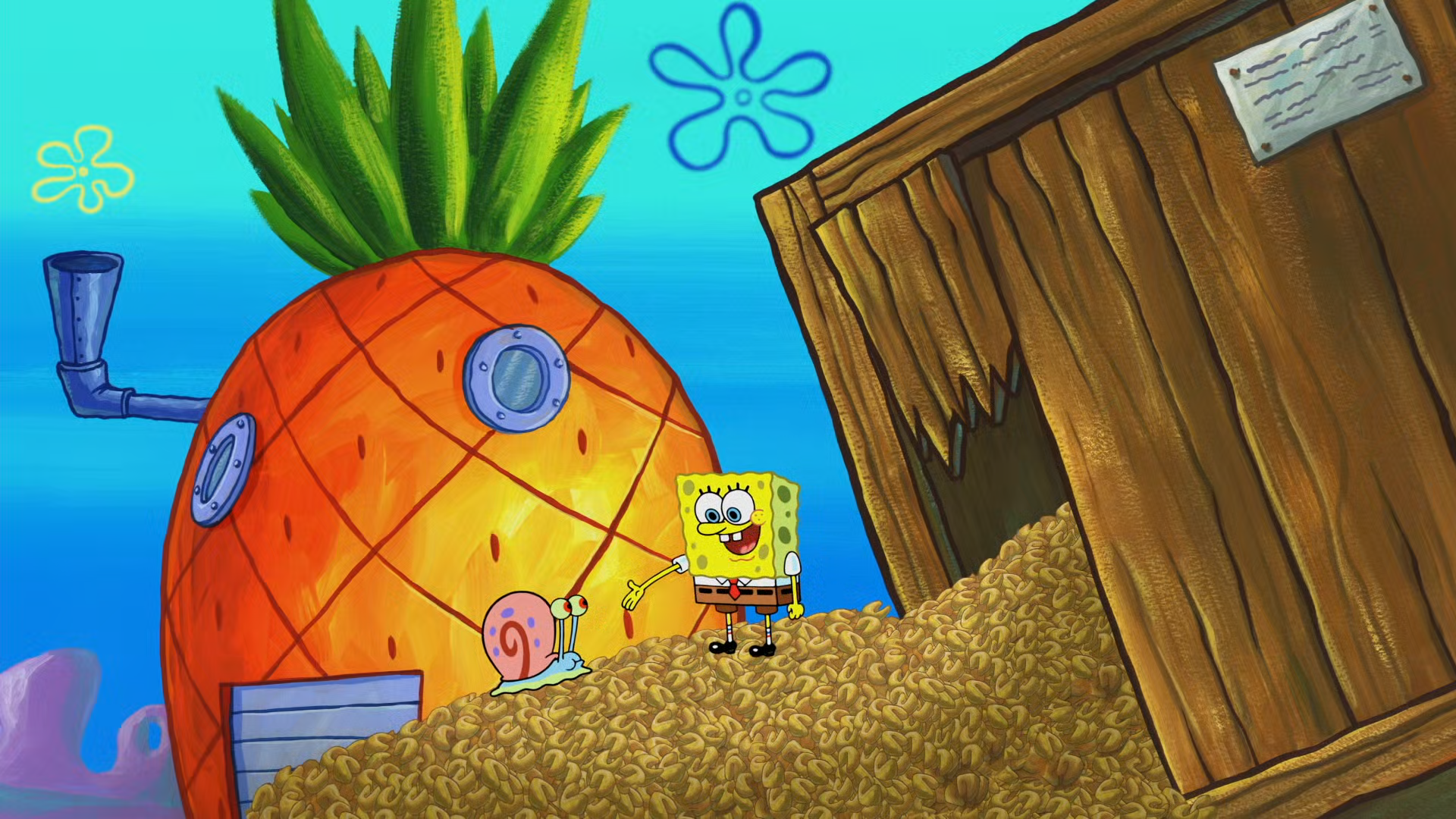 Deep down in the Pacific Ocean in the subterranean city of Bikini Bottom lives a square yellow sponge named SpongeBob SquarePants. SpongeBob lives in a pineapple with his pet snail, Gary, loves his job as a fry cook at the Krusty Krab, and has a knack for getting into all kinds of trouble without really trying. When he's not getting on the nerves of his cranky next door neighbor Squidward, SpongeBob can usually be found smack in the middle of all sorts of strange situations with his best buddy, the simple yet lovable starfish, Patrick, or his thrill-seeking surfer-girl squirrel pal, Sandy Cheeks.