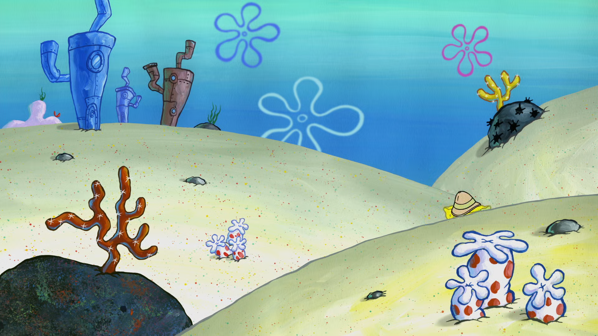 Deep down in the Pacific Ocean in the subterranean city of Bikini Bottom lives a square yellow sponge named SpongeBob SquarePants. SpongeBob lives in a pineapple with his pet snail, Gary, loves his job as a fry cook at the Krusty Krab, and has a knack for getting into all kinds of trouble without really trying. When he's not getting on the nerves of his cranky next door neighbor Squidward, SpongeBob can usually be found smack in the middle of all sorts of strange situations with his best buddy, the simple yet lovable starfish, Patrick, or his thrill-seeking surfer-girl squirrel pal, Sandy Cheeks.