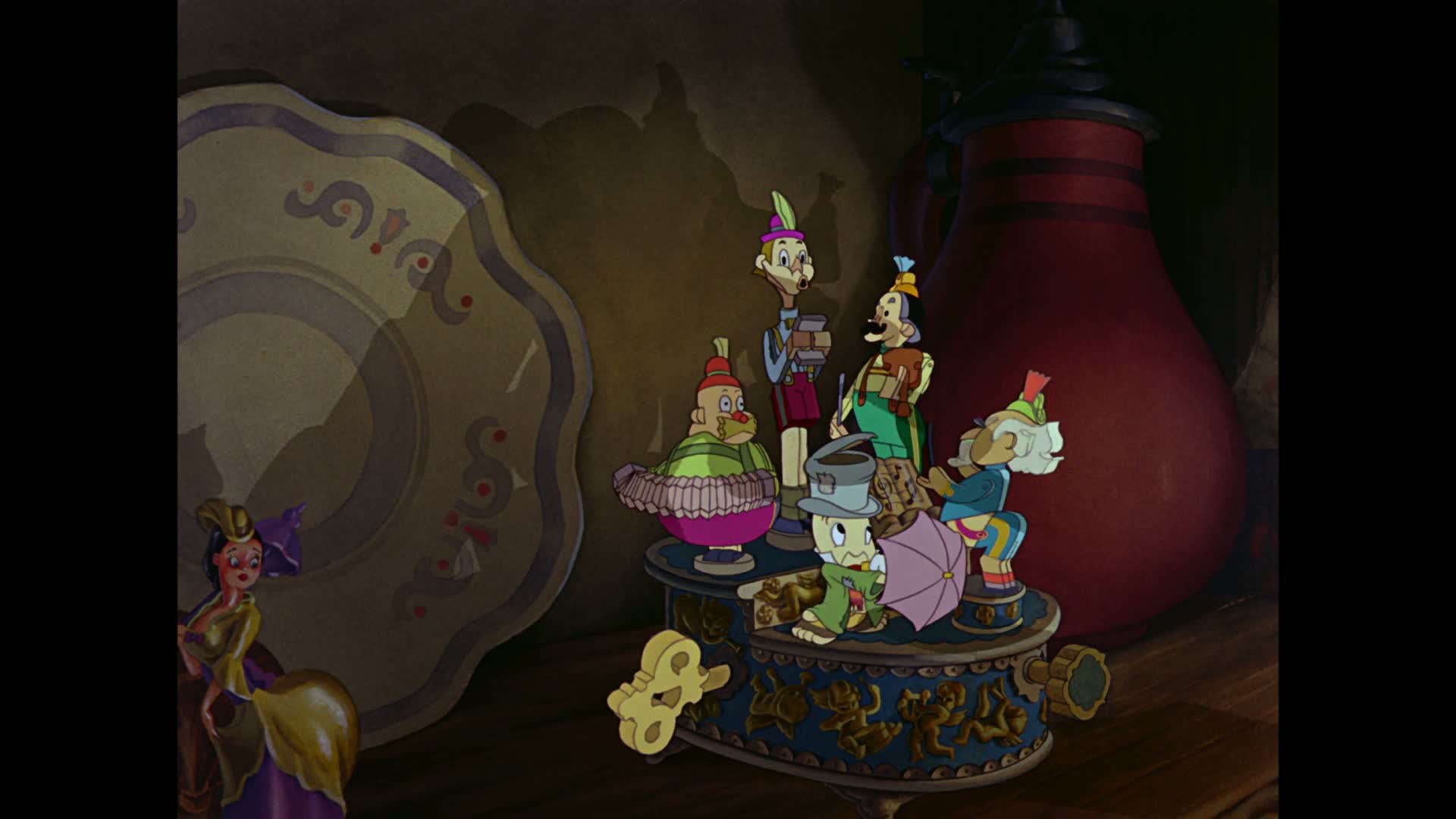 When the gentle woodcarver Geppetto builds a marionette to be his substitute son, a benevolent fairy brings the toy to life. The puppet, named Pinocchio, is not yet a human boy. He must earn the right to be real by proving that he is brave, truthful, and unselfish.