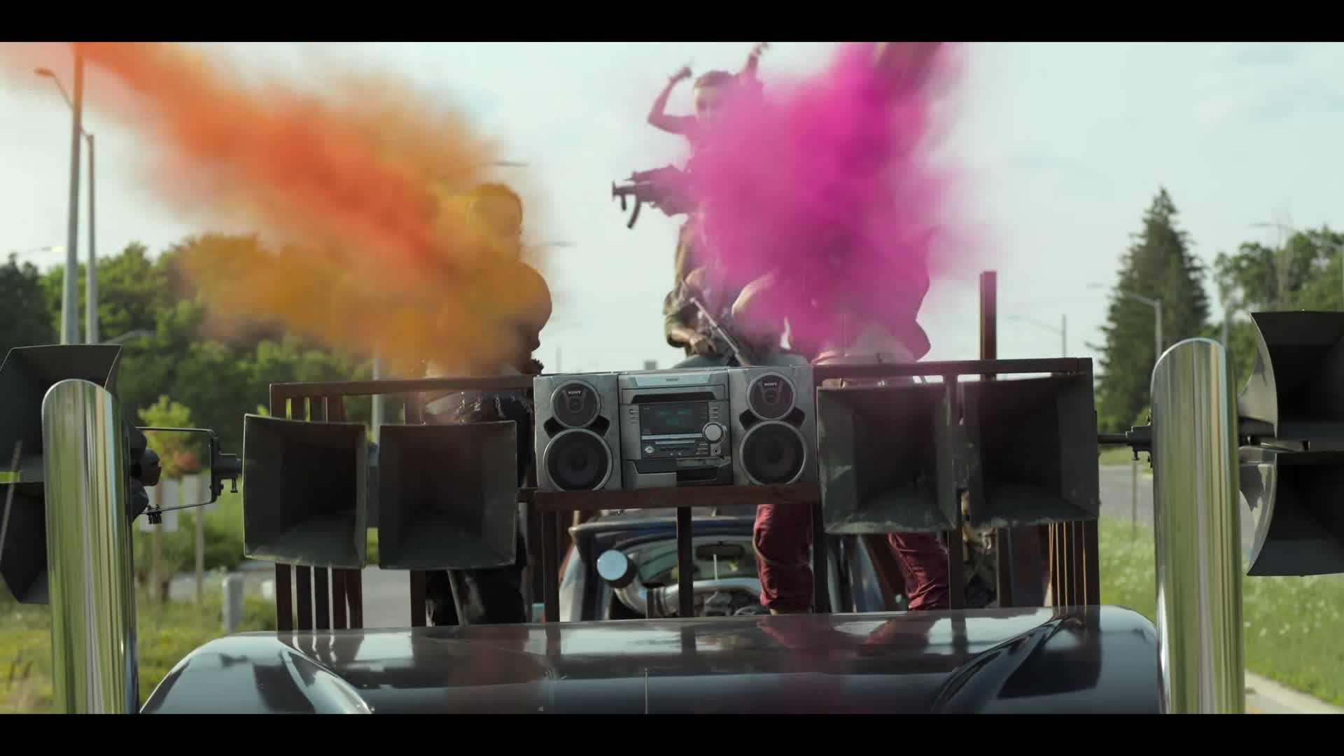 A motor-mouthed outsider with no memory of his past is offered a chance at a better life, but only if he can successfully deliver a mysterious package across a post-apocalyptic wasteland. With the help of a badass axe-wielding car thief, he’ll face savage marauders driving vehicles of destruction and other dangers of the open road, including a deranged clown who drives an all too familiar ice cream truck.