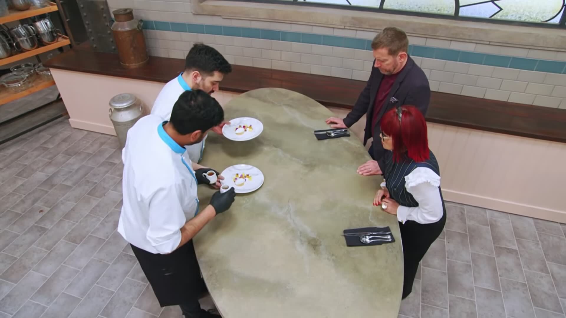 Teams of professional pastry chefs do battle in the kitchen.