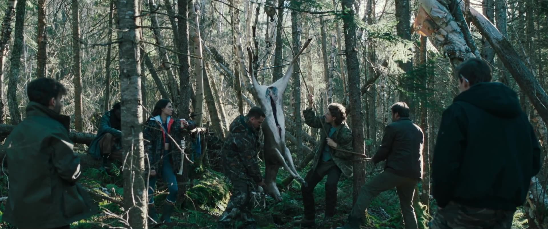 Nina, a young and headstrong exotic dancer, finds herself stranded in the far North. She convinces her recent customers, five men on a bachelor hunting trip, to put her up for a few days. In this masculine microsociety, by turns hilarious and philosophical, Cynthia starts to feel a sense of belonging she never has before. But a mysterious stranger’s arrival changes the course of this improvised holiday forever. Both raw and dreamlike, Hunting Daze offers up a unique universe where humour, horror, the uncanny, and the sensual combine.