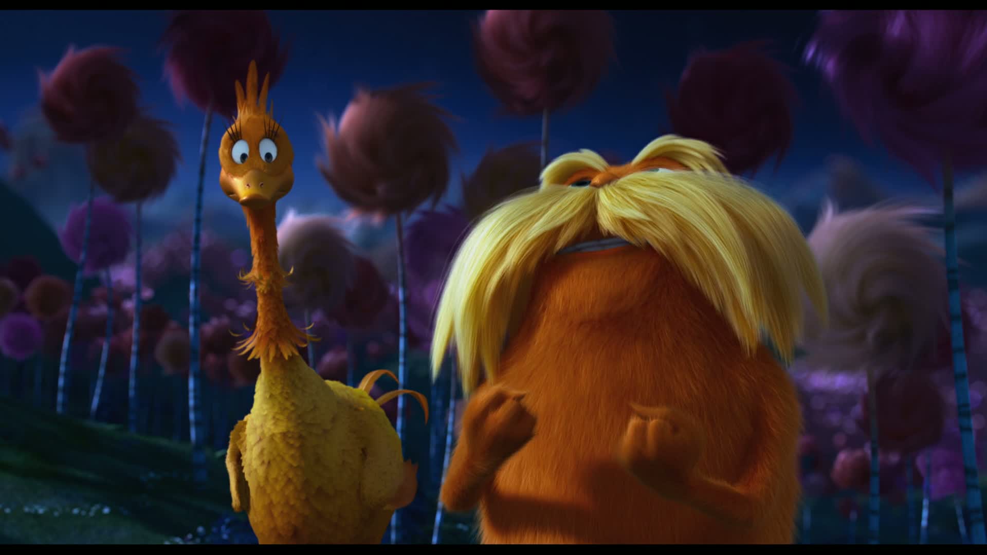 A 12-year-old boy searches for the one thing that will enable him to win the affection of the girl of his dreams. To find it he must discover the story of the Lorax, the grumpy yet charming creature who fights to protect his world.