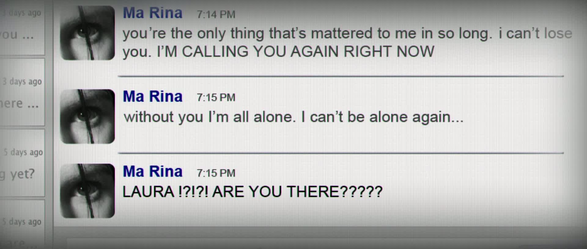 Enjoying college life as a popular student, Laura shares everything with her more than 800 friends on Facebook. But one day, after accepting a friend request from a social outcast named Marina, Laura’s life is cursed...