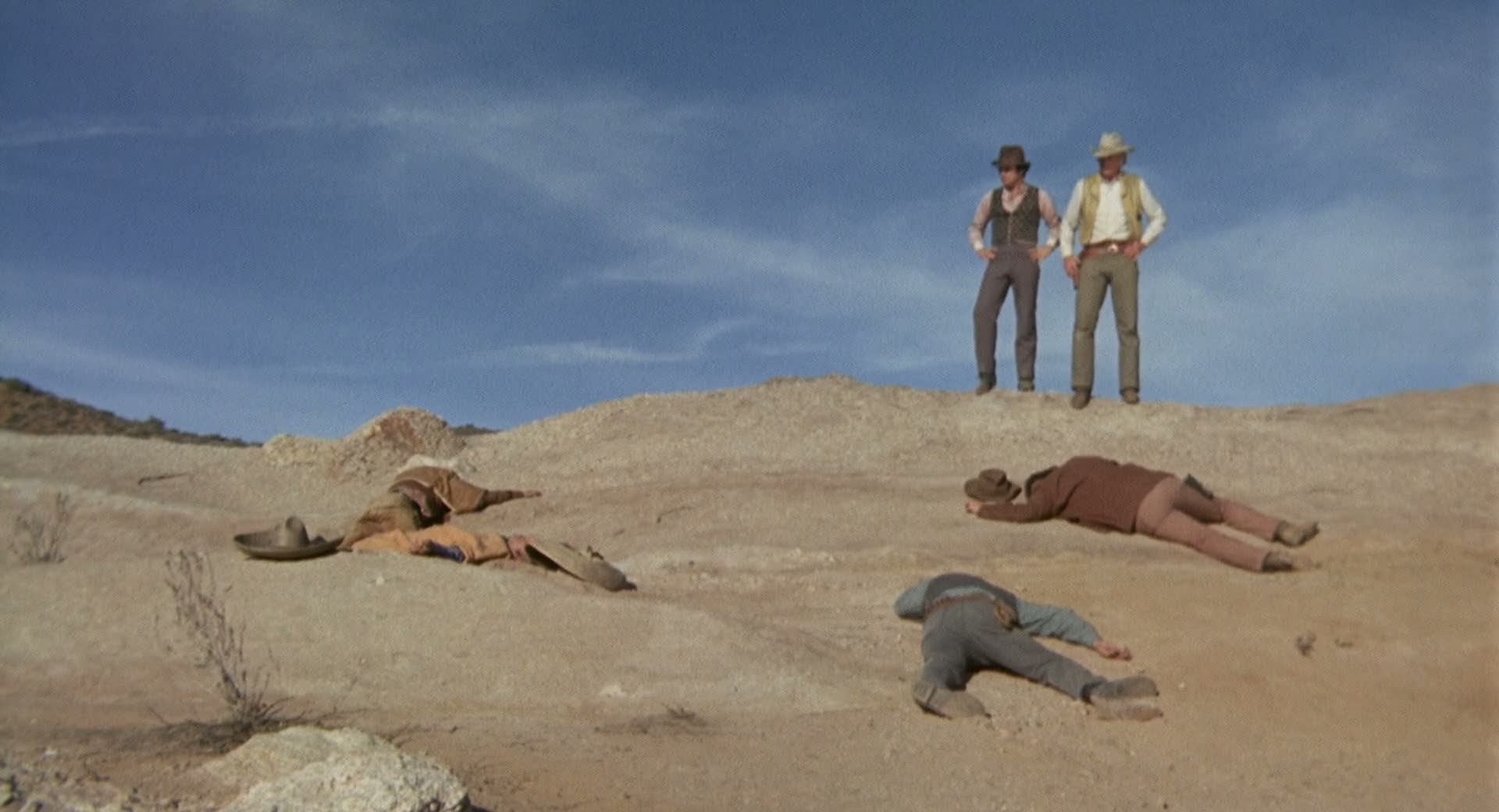 Marshal Chris Adams turns down a friend's request to help stop the depredations of a gang of Mexican bandits. When his wife is killed by bank robbers and his friend is killed capturing the last thief, Chris feels obligated to take up his friend's cause and recruits a writer and five prisoners to destroy the desperadoes.The last in the original series of four "Magnificent Seven" movies.