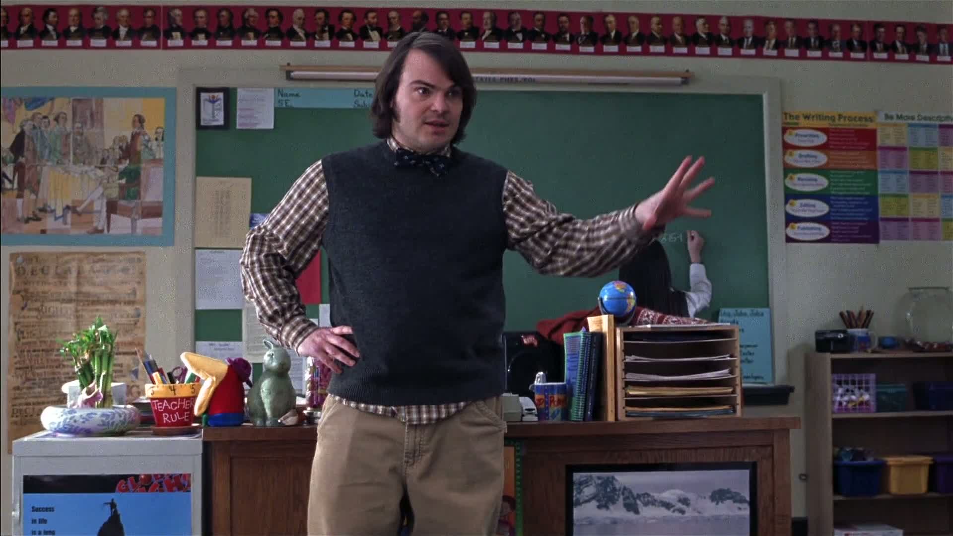 Fired from his band and hard up for cash, guitarist and vocalist Dewey Finn finagles his way into a job as a fifth-grade substitute teacher at a private school, where he secretly begins teaching his straight-A students the finer points of rock 'n' roll and the power of sticking it to the man. But as the school’s stern principal closes in and the Battle of the Bands looms, Dewey risks everything to prove that rock ’n’ roll can change lives.