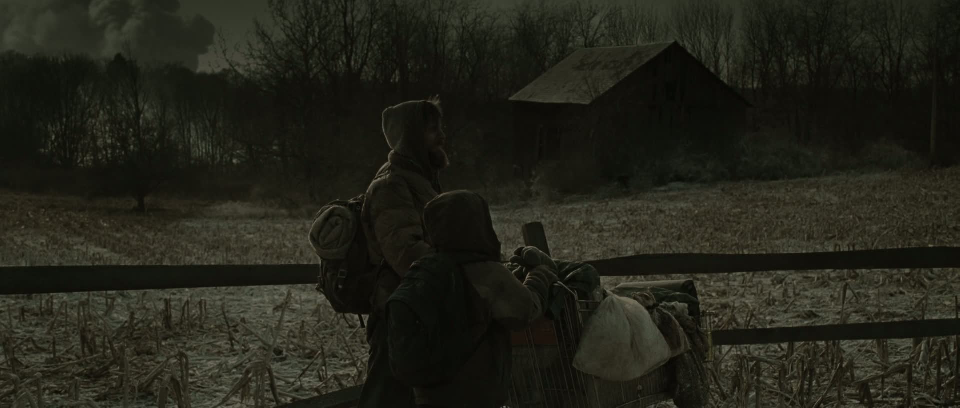 A father and his son walk alone through burned America. Nothing moves in the ravaged landscape save the ash on the wind and water. It is cold enough to crack stones and, when the snow falls, it is gray. Their destination is the warmer south, although they don't know what, if anything, awaits them there.