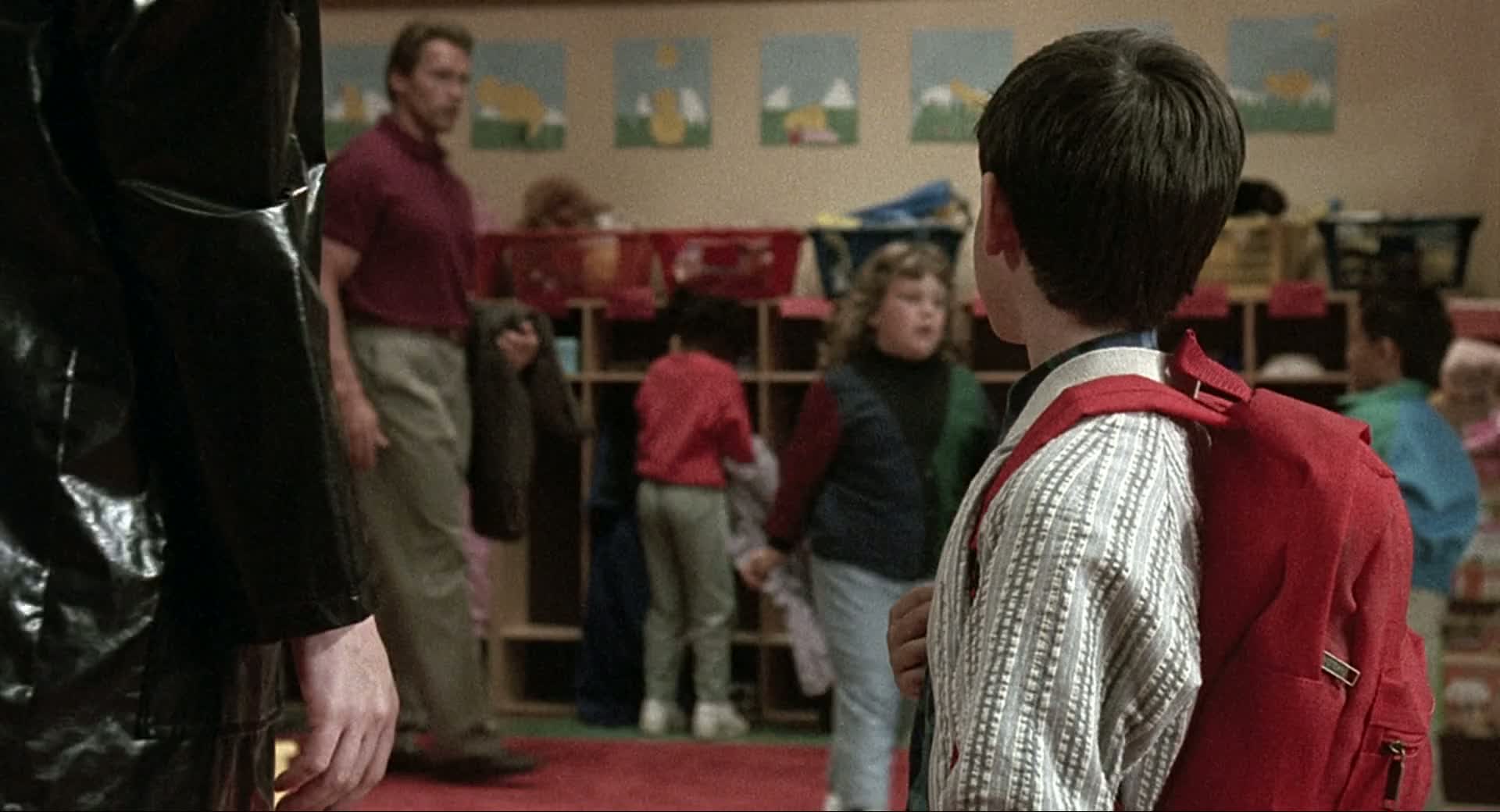 Hard-edged cop John Kimble gets more than he bargained for when he goes undercover as a kindergarten teacher to get the goods on a brutal drug lord while at the same time protecting the man's young son. Pitted against a class of boisterous moppets whose antics try his patience and test his mettle, Kimble may have met his match … in more ways than one.