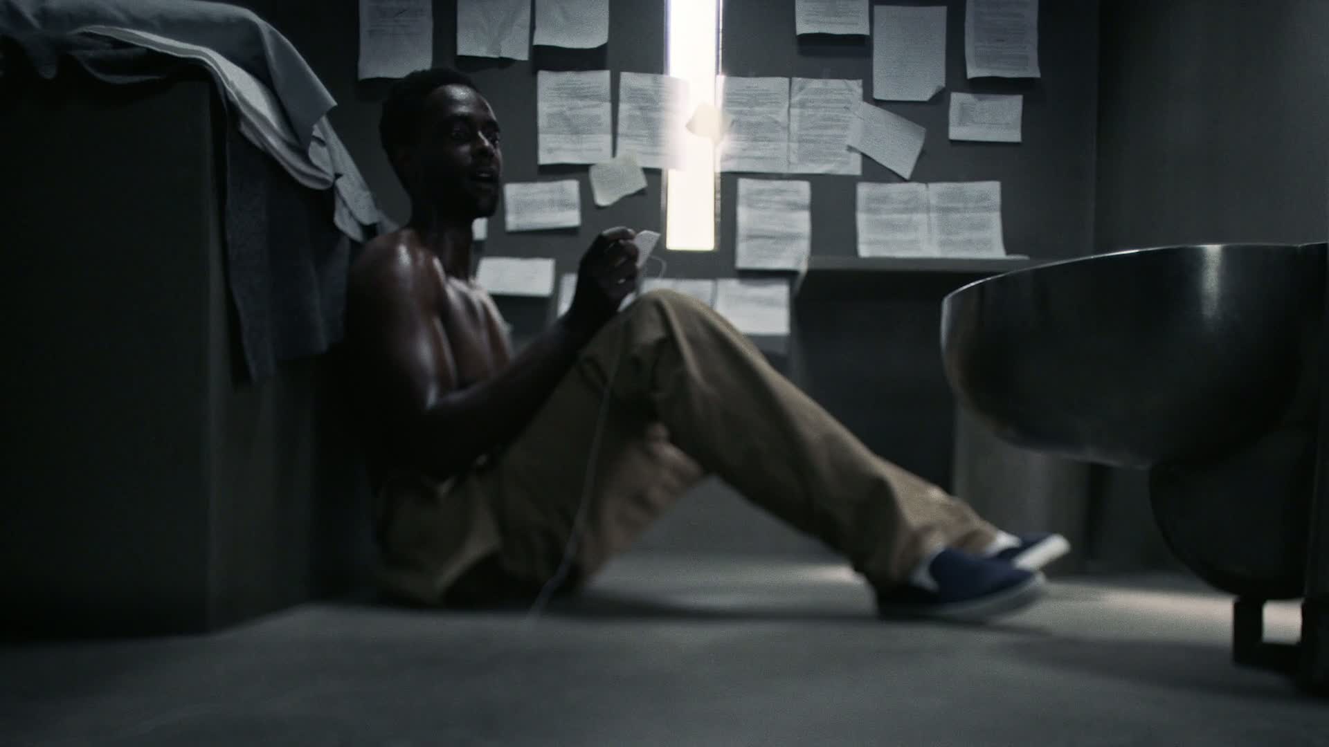 An African American male is imprisoned and placed in solitary confinement after being found guilty of murdering his wife, as he's haunted by internal demons and his dead wife, and pushed to the breaking point by an abusive female guard.