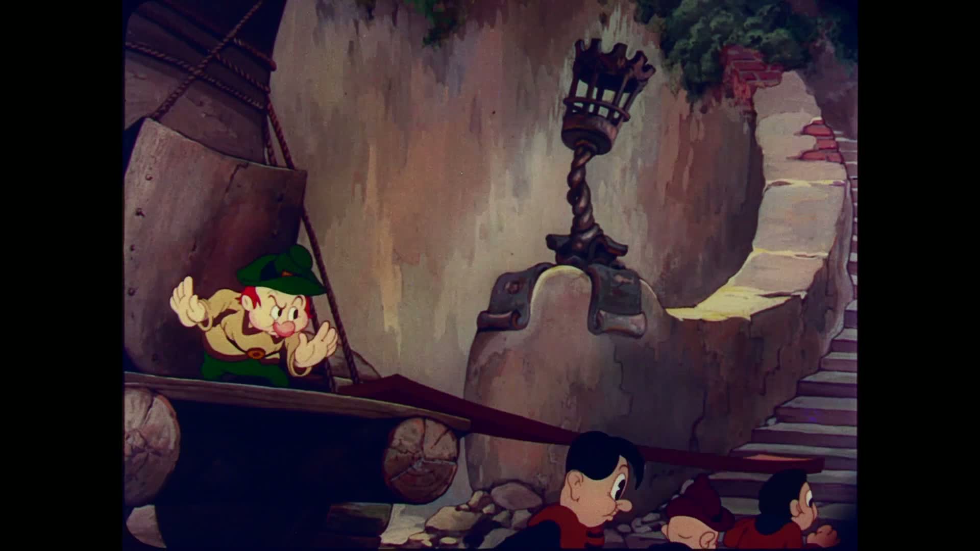 Gulliver washes ashore on Lilliput and attempts to prevent war between that tiny kingdom and its equally-miniscule rival, Blefiscu, as well as smooth the way for the romance between the Princess and Prince of the opposing lands. In this he is alternately aided and hampered by the Lilliputian town crier and general fussbudget, Gabby. A life-threatening situation develops when the bumbling trio of Blefiscu spies, Sneak, Snoop, and Snitch, manage to steal Gulliver's pistol.