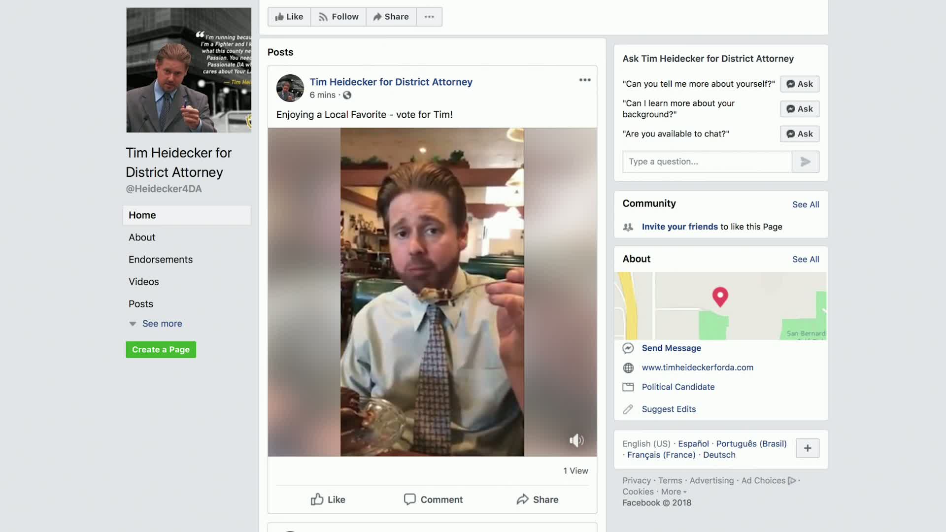 Heidecker beats a murder charge for selling faulty e-cigarettes at an EDM festival, and mounts a campaign to unseat the San Bernardino District Attorney. His effort to win voters tries to overcome a lack of experience and funding by leaning into the candidate’s personal likability. It does not go well.