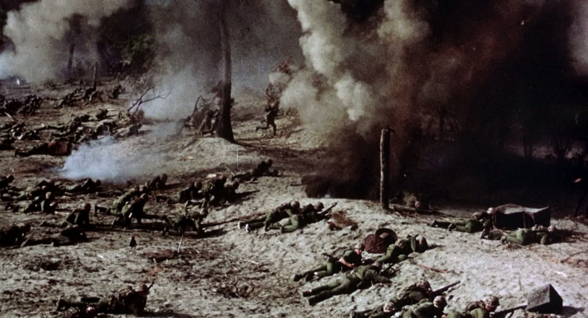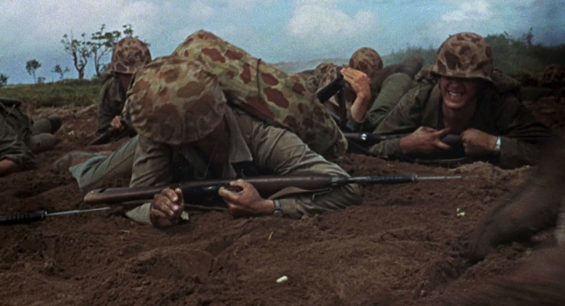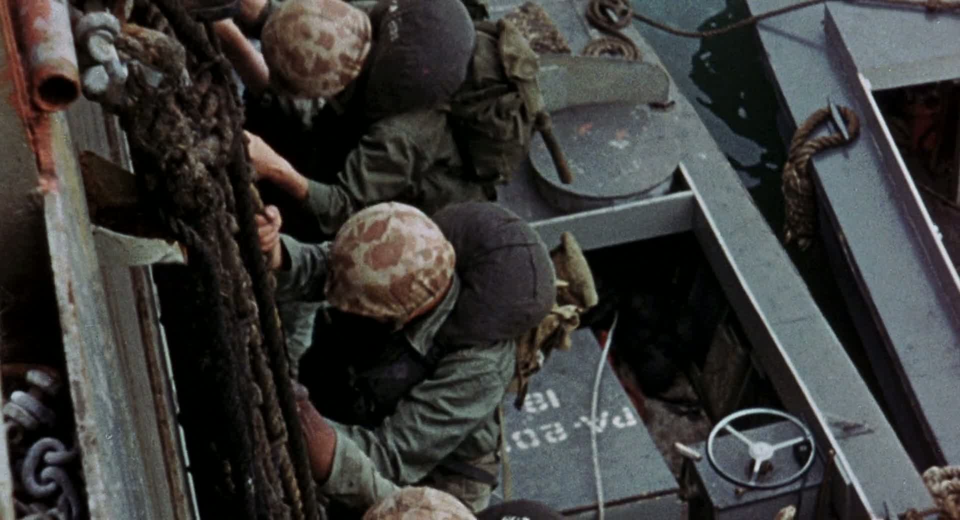 American troops storm ashore on a Japanese-held island and push inland while their enemies plan a counterattack in this look at warfare. Soldiers on both sides are haunted by memories of home and the horrifying, sickening images they find in combat.