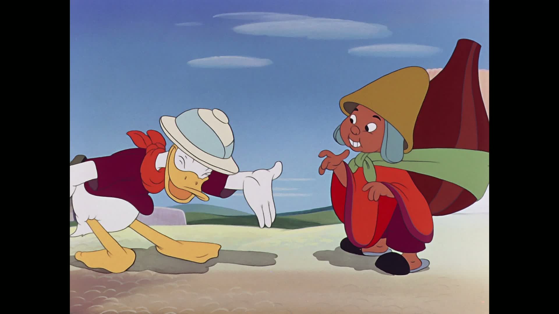 A whimsical blend of live action and animation, "Saludos Amigos" is a colorful kaleidoscope of art, adventure and music set to a toe-tapping samba beat. From high Andes peaks and Argentina's pampas to the sights and sounds of Rio de Janeiro, your international traveling companions are none other than those famous funny friends, Donald Duck and Goofy. They keep things lively as Donald encounters a stubborn llama and "El Gaucho" Goofy tries on the cowboy way of life....South American-style.