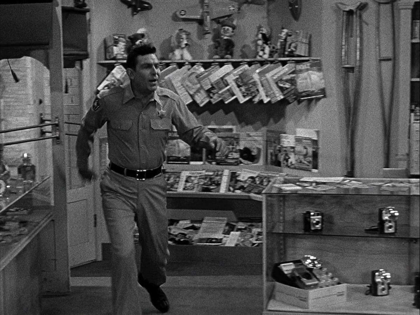 The Andy Griffith Show is an American sitcom first televised on CBS between October 3, 1960 and April 1, 1968. Andy Griffith portrays the widowed sheriff of the fictional small community of Mayberry, North Carolina. His life is complicated by an inept, but well-meaning deputy, Barney Fife, a spinster aunt and housekeeper, Aunt Bee, and a precocious young son, Opie. Local ne'er-do-wells, bumbling pals, and temperamental girlfriends further complicate his life. Andy Griffith stated in a Today Show interview, with respect to the time period of the show: "Well, though we never said it, and though it was shot in the '60s, it had a feeling of the '30s. It was when we were doing it, of a time gone by." The series never placed lower than seventh in the Nielsen ratings and ended its final season at number one. It has been ranked by TV Guide as the 9th-best show in American television history. Though neither Griffith nor the show won awards during its eight-season run, series co-stars Knotts and Bavier accumulated a combined total of six Emmy Awards. The show, a semi-spin-off from an episode of The Danny Thomas Show titled "Danny Meets Andy Griffith", spawned its own spin-off series, Gomer Pyle, U.S.M.C., a sequel series, Mayberry R.F.D., and a reunion telemovie, Return to Mayberry. The show's enduring popularity has generated a good deal of show-related merchandise. Reruns currently air on TV Land, and the complete series is available on DVD. All eight seasons are also now available by streaming video services such as Netflix.