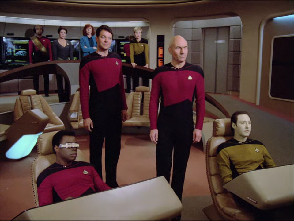 Cast: Patrick Stewart, Jonathan Frakes, Brent Spiner, LeVar Burton, Michael Dorn