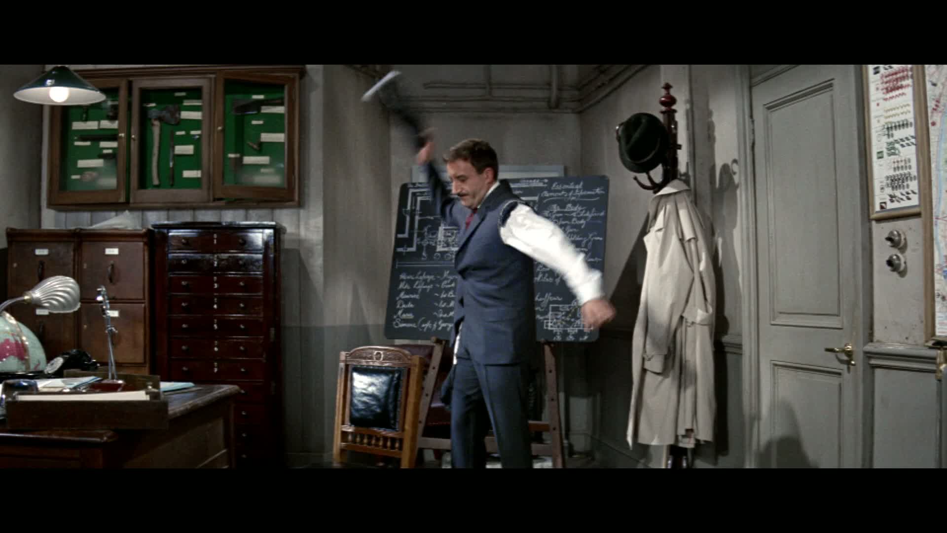 Inspector Jacques Clouseau, smitten with the accused maid Maria Gambrelli, unwittingly turns a straightforward murder investigation into a comedic series of mishaps, testing the patience of his irritable boss Charles Dreyfus as casualties mount.