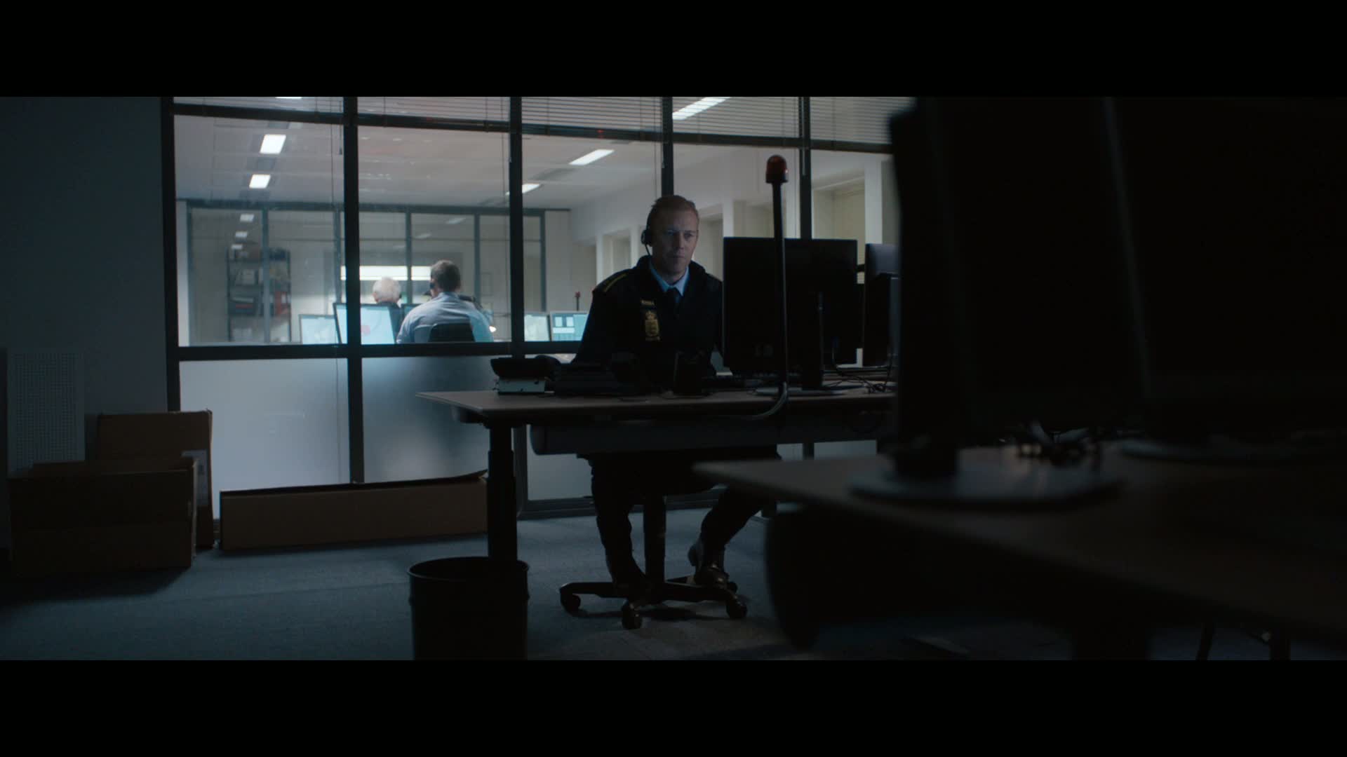 Police officer Asger Holm, demoted to desk work as an alarm dispatcher, answers a call from a panicked woman who claims to have been kidnapped. Confined to the police station and with the phone as his only tool, Asger races against time to get help and find her.