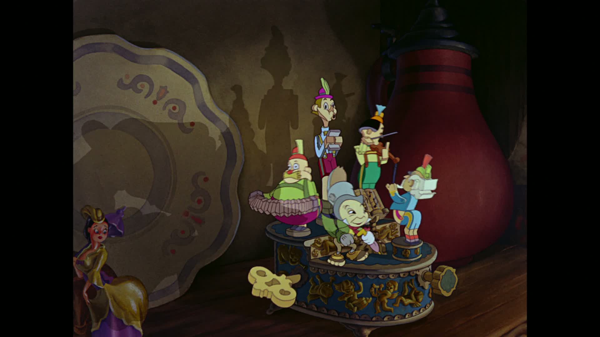 When the gentle woodcarver Geppetto builds a marionette to be his substitute son, a benevolent fairy brings the toy to life. The puppet, named Pinocchio, is not yet a human boy. He must earn the right to be real by proving that he is brave, truthful, and unselfish.