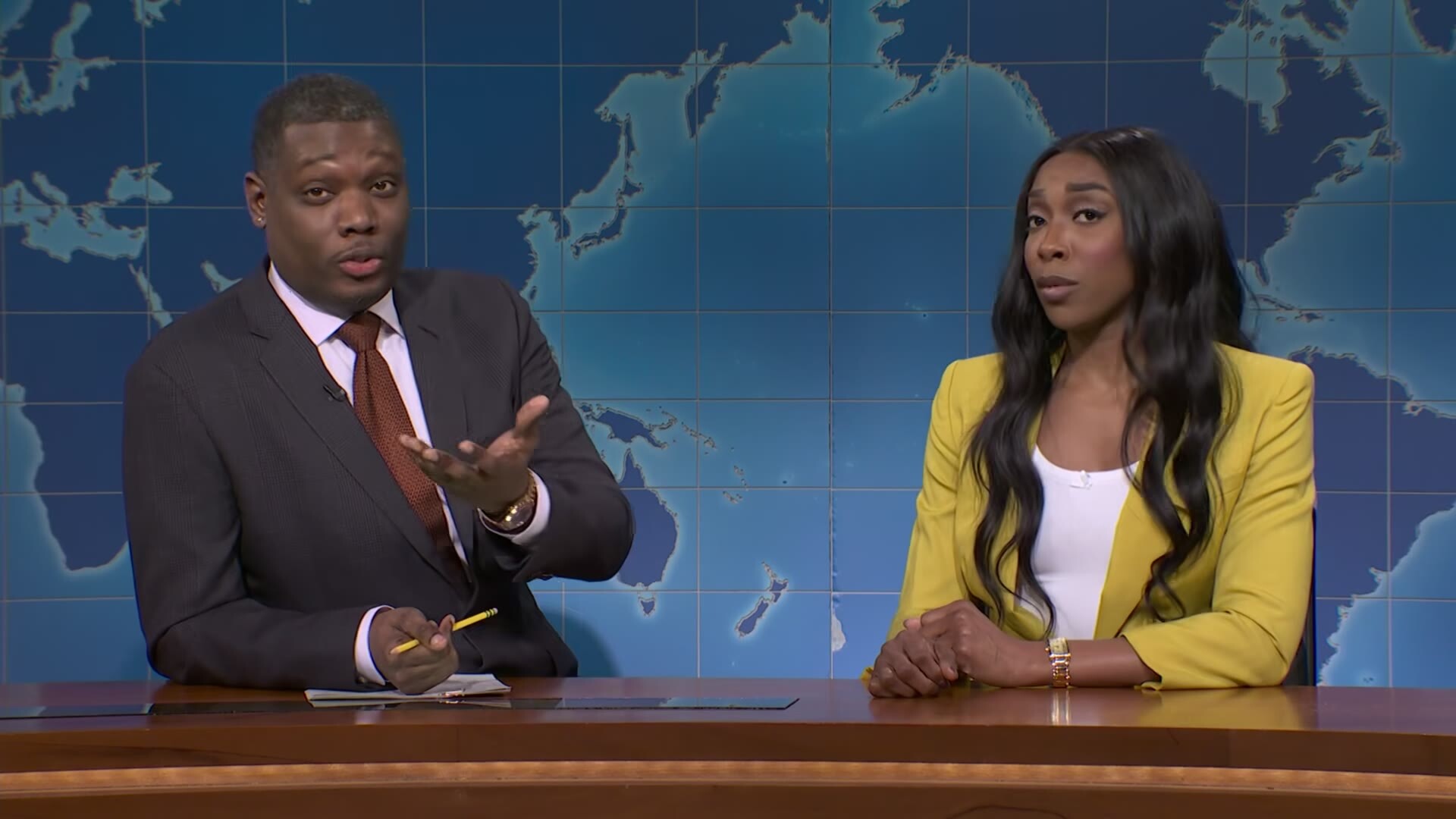 Cast: Michael Che, Mikey Day, Andrew Dismukes, Chloe Fineman, Marcello Hernández
