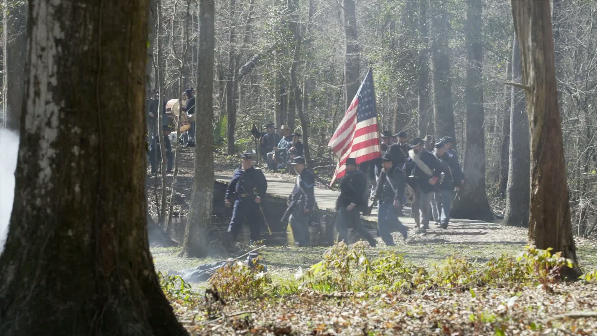 In the middle of Sherman's March, in eastern Georgia, Confederate infantry, cavalry, and artillery make a bold stand against the overwhelming numbers of the Union army as it tears across Georgia.