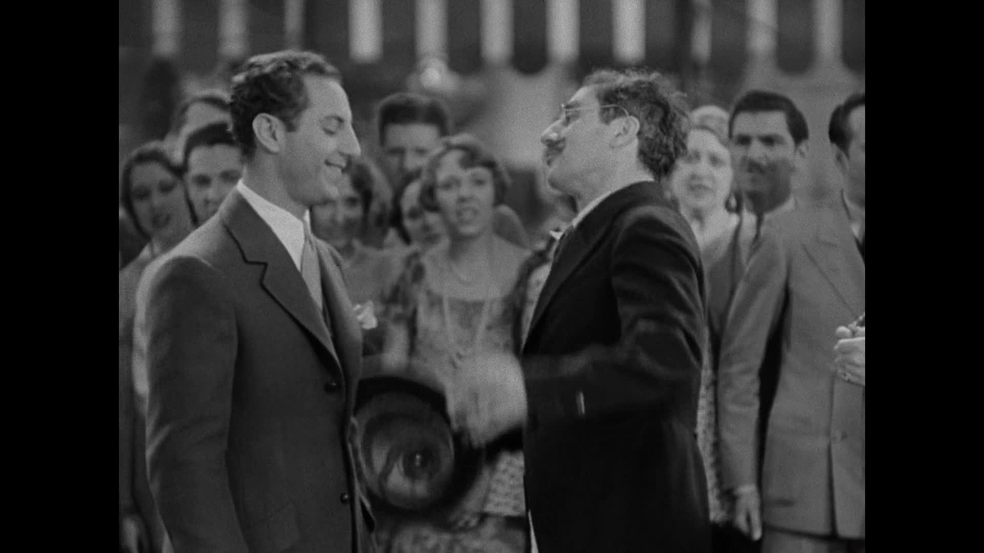 The well-known explorer and hunter Captain Spaulding has just returned from Africa, and is being welcomed home with a lavish party at the estate of influential society matron Mrs. Rittenhouse when a valuable painting goes missing. The intrepid Captain Spaulding attempts to solve the crime with the help of his silly secretary Horatio Jamison, while sparring with the anarchic Signor Emanuel Ravelli and his nutty sidekick The Professor.