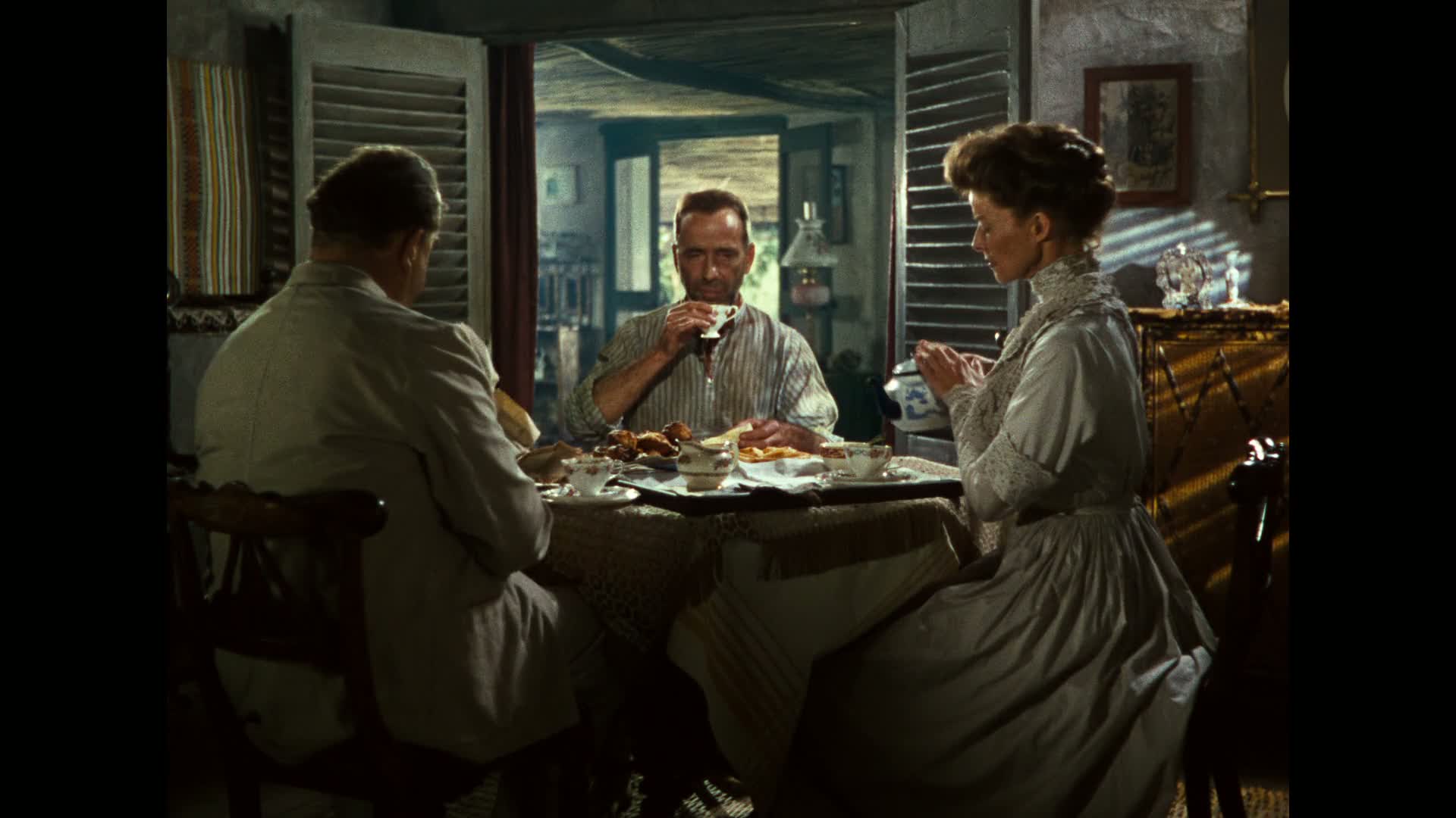 Cast: Humphrey Bogart, Katharine Hepburn, Robert Morley, Peter Bull, Theodore Bikel