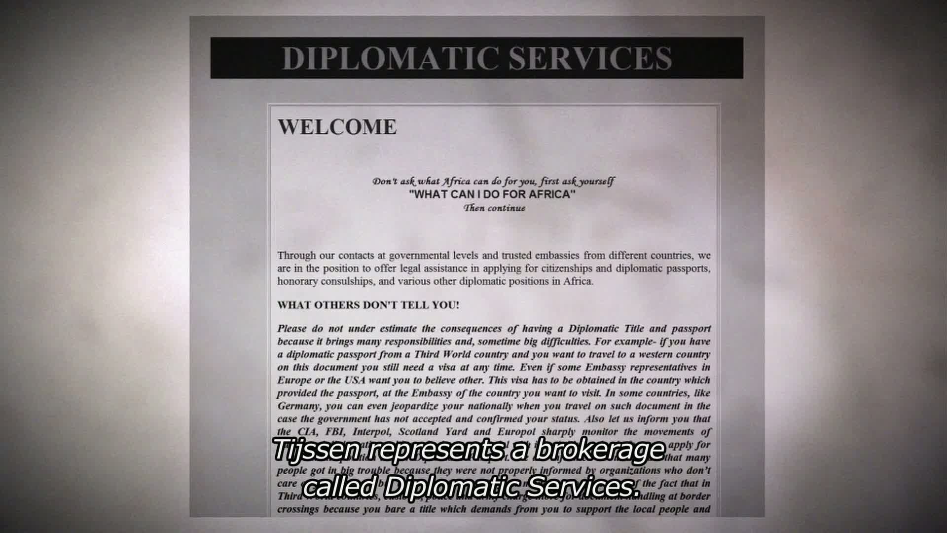 Danish journalist Mads Brügger goes undercover as a Liberian Ambassador to embark on a dangerous yet hysterical journey to uncover the blood diamond trade in Africa.