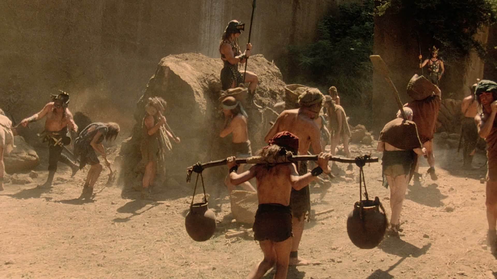 Orphaned brothers Kutchek and Gore are adopted by a tribe led by Canary the owner of a powerful jewel. The evil Kadar wants both Canary and the jewel. Attacking the tribe he kidnaps Canary but the stone eludes him. The brothers are taken to be trained as gladiators and years later have grown to be VERY big. They escape and set off on a quest to find the jewel and rescue Canary.