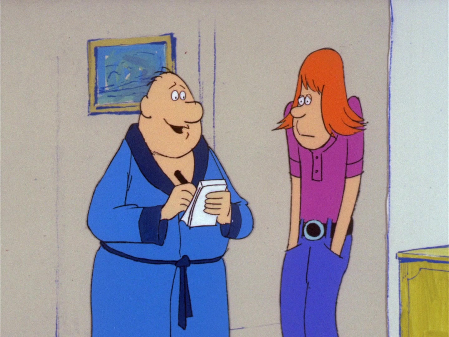 Wait Till Your Father Gets Home chronicles the lives of the Boyles, your average 1970's American family. Harry Boyle, the father, owns a restaurant supply company. His wife Irma portrays the typical housewife, with an occasional independent flare. Harry and Irma have three children: Chet, Alice, and Jamie. Chet, who is 22, is a college dropout, who spends most of his time sleeping. Alice is a rather robust 16-year-old, who teams up with her mother, to display the independence of women, in the 70's. Jamie is the Capitalist of the family, even though he is only 9. The show is set in the suburbs of Los Angeles, on Elm Street, to be precise. During the 1973 season, the show was host to many celebrity voices, including: Don Knotts, Phyllis Diller, Bea Arthur and many more (many of these guests were carried over from The New Scooby-Doo Movies, which were recored at this time).