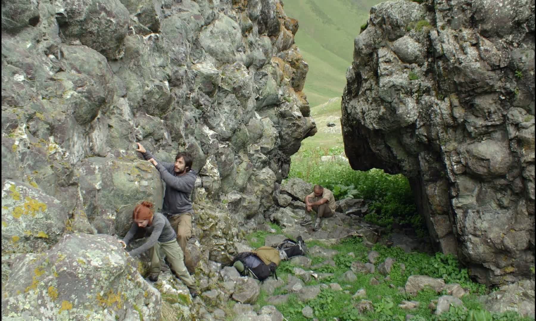 Backpacking in the Caucasus Mountains, walking for hours, an engaged couple and their tour guide trade anecdotes and play games to pass the time, until a momentary misstep, that takes only two or three seconds, changes everything.