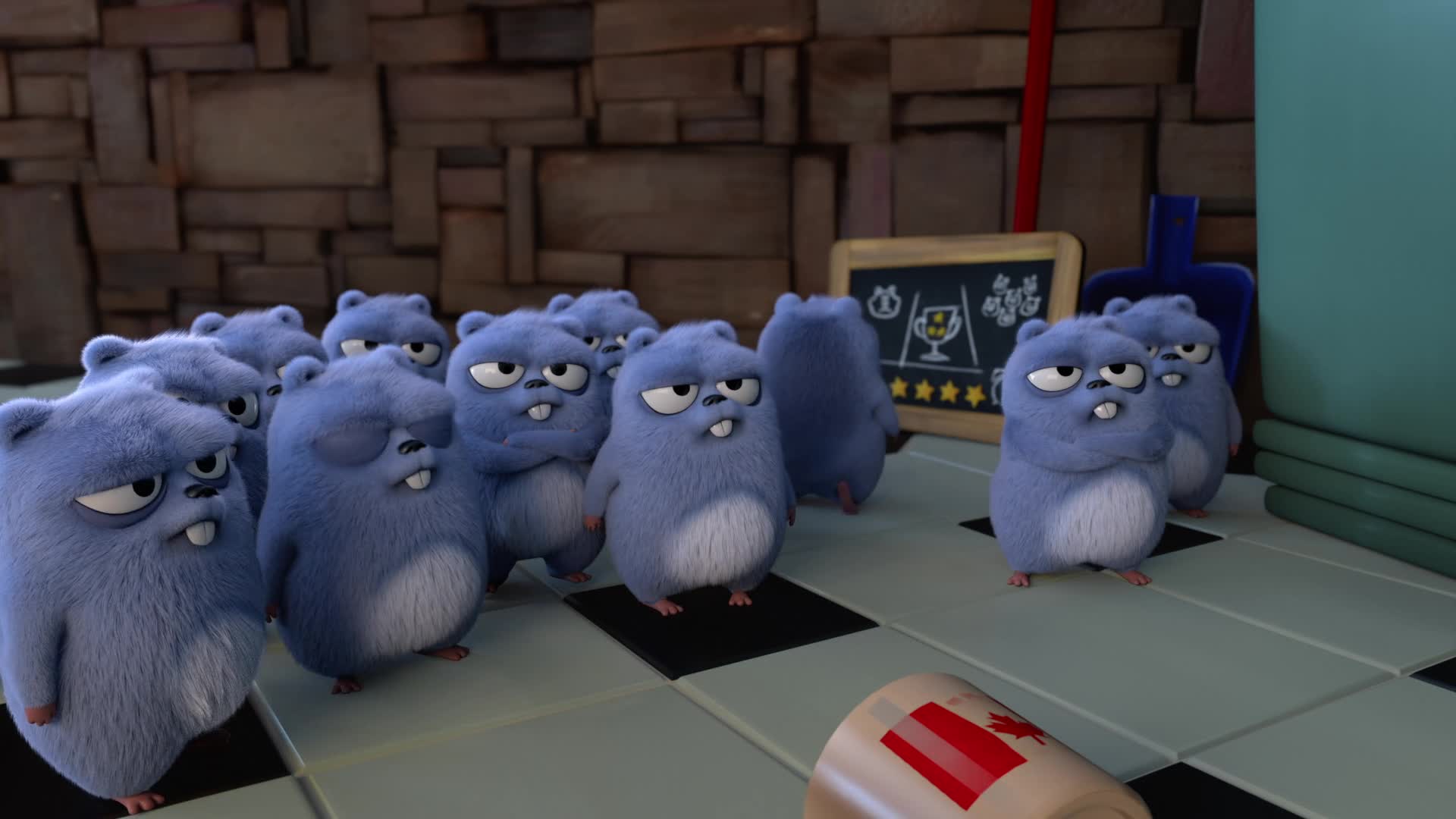 The forest ranger's house is the only area of human civilization in the middle of untamed wilderness in a vast natural reserve in Canada. When the ranger is away, a bear named Grizzy feels that the ranger's house is his territory, given that bears sit at the top of the food chain. After making his way inside the home, Grizzy takes advantage of all the modern conveniences there, including a comfortable sofa, air conditioning and fully equipped kitchen. He's not alone, though, because a group of small creatures called lemmings also populate the ranger's house when he is away. Because Grizzy and the lemmings are not civilized enough to live together in peace, it becomes an atmosphere of madness when the two sides try to outdo each other with tricks.