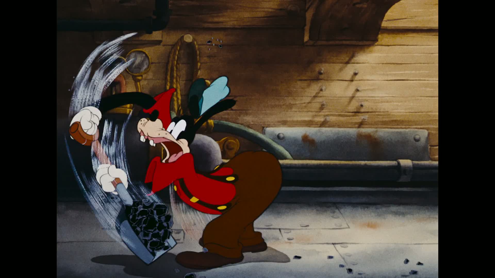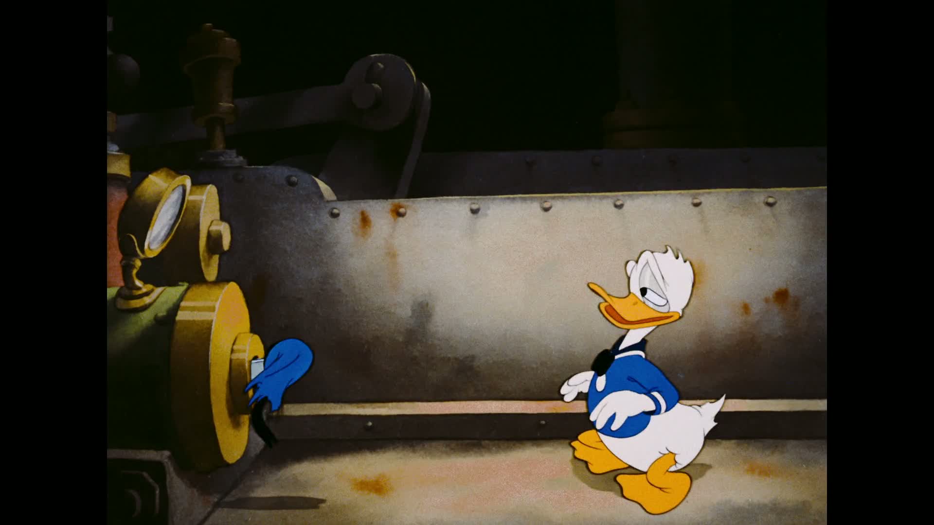 Mickey is performing routine maintenance on his tugboat (with interference from a pelican) when a call comes on the radio that there's a sinking ship needing assistance. Sadly, Mickey's crew consists of Donald and Goofy, so getting underway to help is not easy. Goofy has to fight a boiler's door to get it stoked with coal (and when he succeeds, he overfills it) and Donald gets tangled up in the machinery. Not to mention that nobody casts off, so they drag half the dock along with them. The overworked boiler soon explodes.