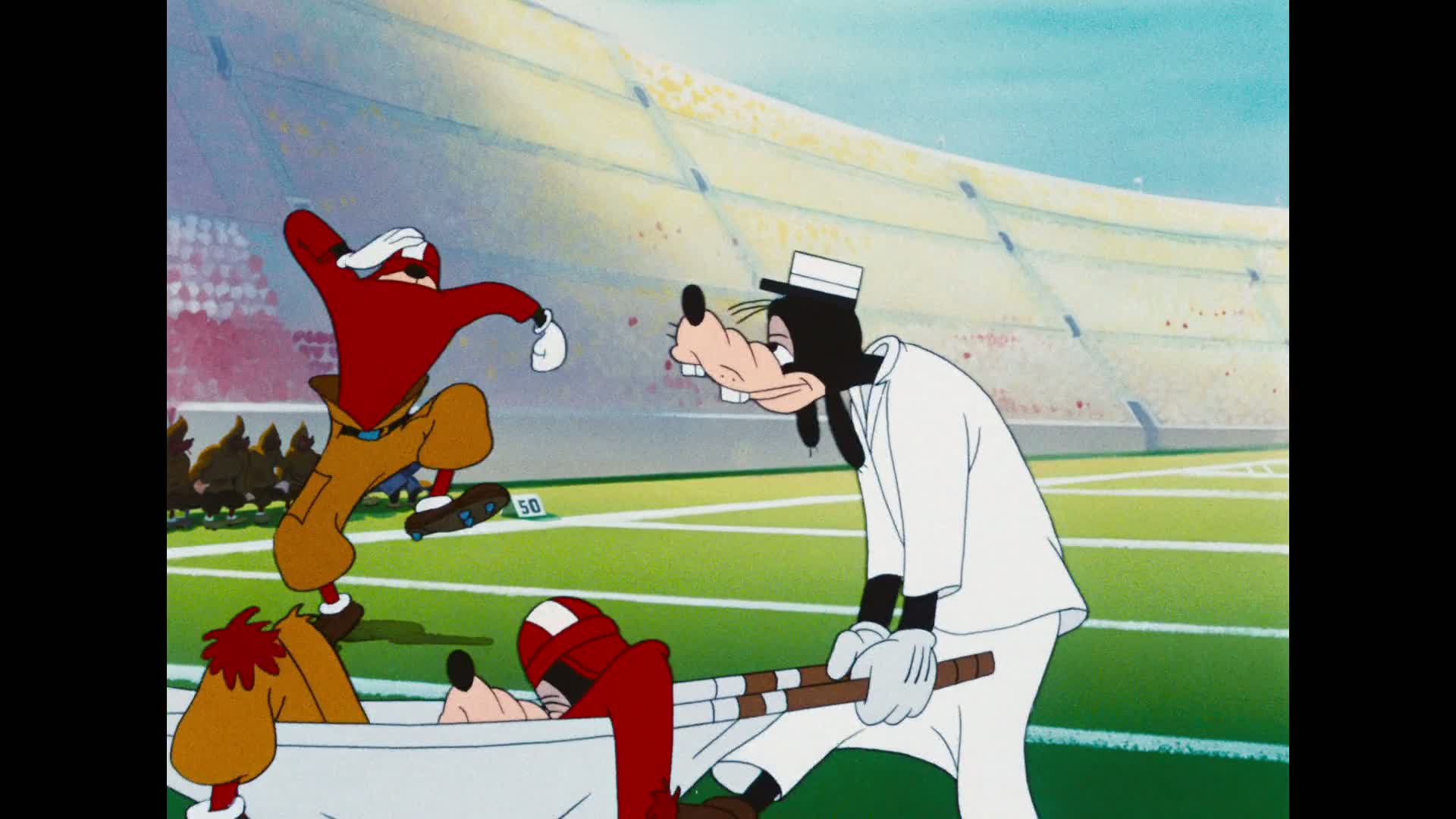 Goofy demonstrates the game of football.