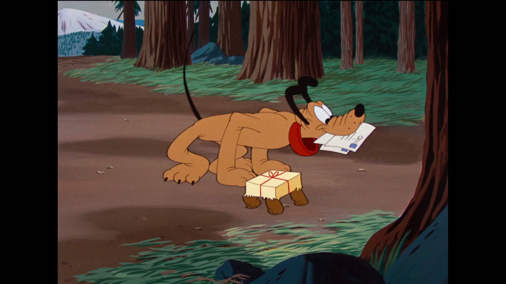 Pluto tries to bring in the mail, which gets more difficult when a package sprouts legs and tries to go swimming. Between the wandering turtle and the wind blowing the other mail around, Pluto's got quite a task ahead. And it's not made easier when both the letters and the turtle go off a large cliff.