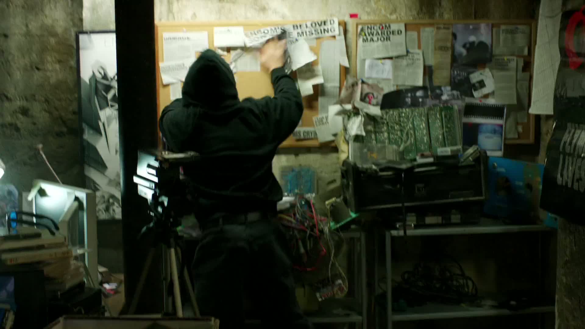 TRON: The Next Day is a 10-minute short film, released on the Blu-ray edition of TRON: Legacy in April 2011, that fills in the backstory between TRON and TRON: Legacy. It features scenes from the real-world Flynn Lives ARG as well as purely in-universe content. The short film also reveals the full chronology of the Flynn Lives Organization, naming Roy Kleinberg as the secret figure heading up the operation and Alan Bradley as its financial backer. Some scenes in the short also set up the story for a potential third film.