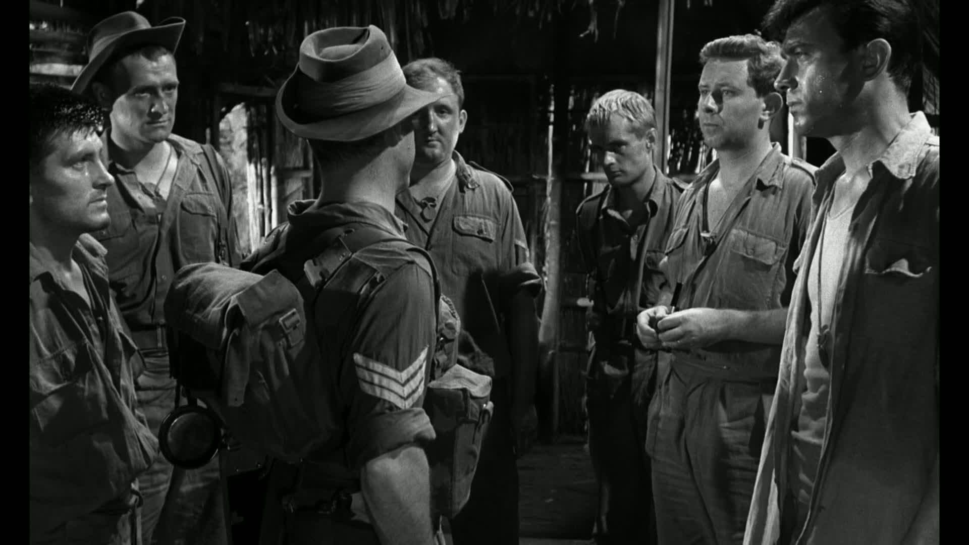 Based on a play by Willis Hall. A troop of British soldiers are out in the jungle to record jungle noises and troop noises in the jungle so that the recordings can be played back by other troops to divert the enemy to their whereabouts. As they progress to what they think is closer to the base camp they find themselves farther and farther from radio range until the only channel they can get clearly is that of a Japanese broadcast. They now realize they are probably only 10 to 15 miles from a Japanese camp! The tension is added to by rowdy and openly admitted "non-hero" Private Bamforth who has nothing good to say about anyone and especially Corporal Johnstone (who holds an equal dislike for Bamforth). When a Japanese soldier is taken as their prisoner, the true colours of each man comes to the surface