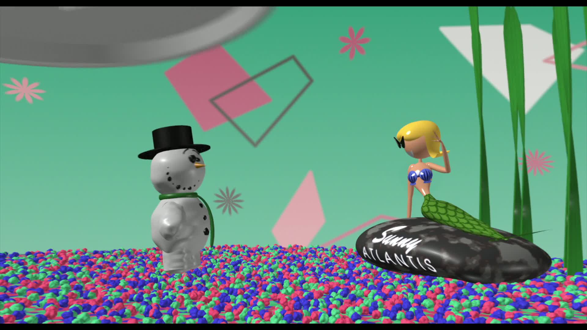 Life on a shelf as a snowman trapped in a snow-globe blizzard can become wearing, especially when you're surrounded by knickknacks from sunnier locales. When the jaded snowman finally breaks free of his glass house, his vacation plans are cut short.