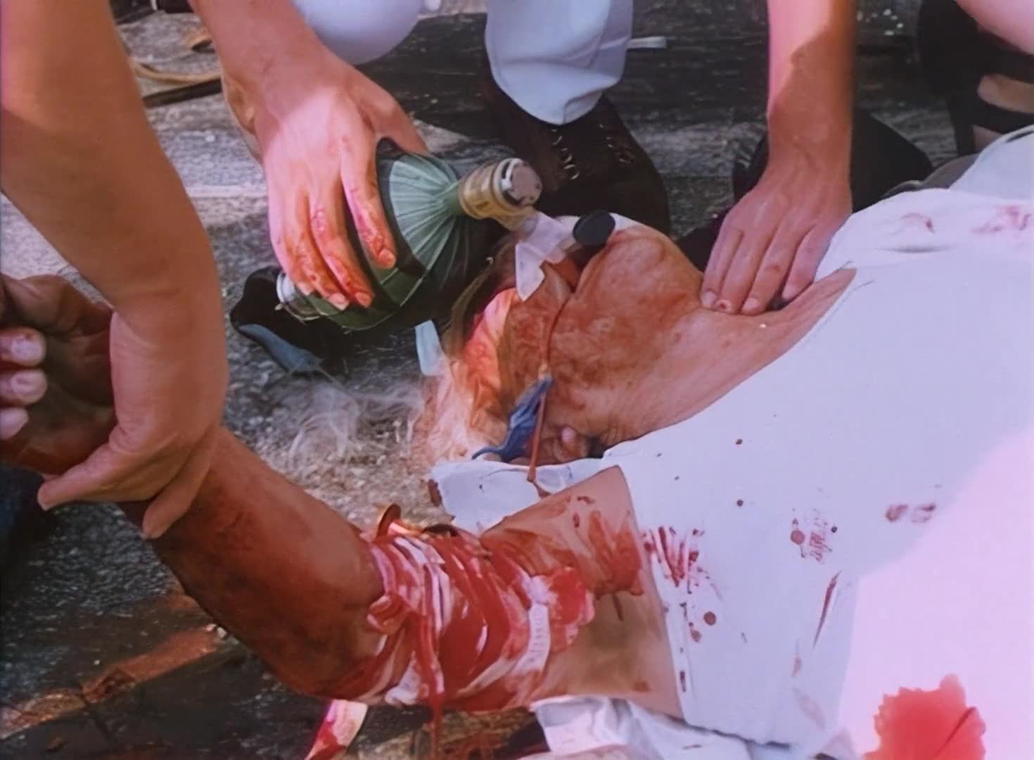 Brief scenes of death related material: mortuaries, accidents and police work are filmed by TV crews and home video cameras. Some of it is most likely fake, some not as much.