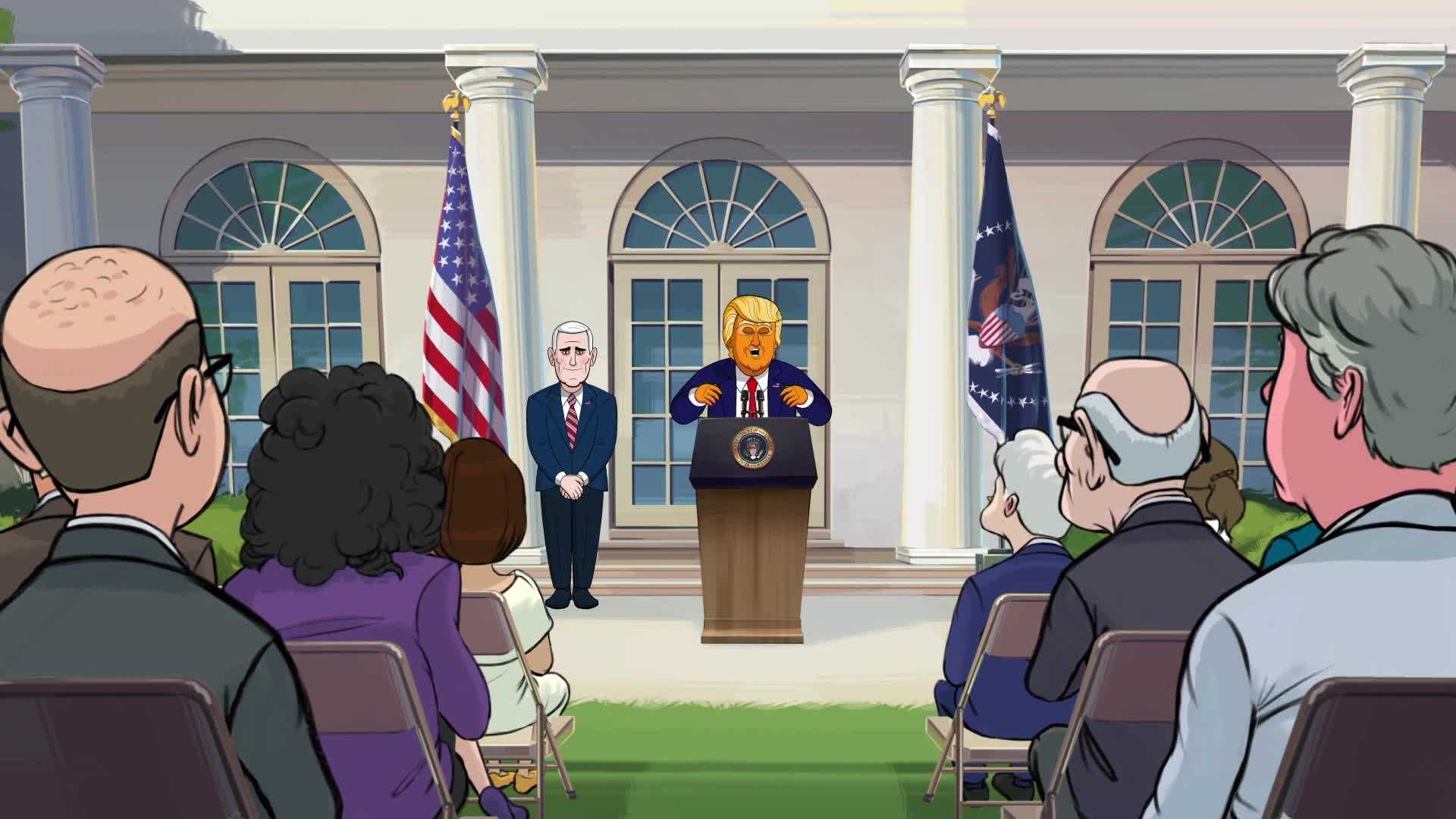 A hilarious look into the Trump presidency, animation style. Starring two-dimensional avatars of Donald Trump and his merry band of insiders and family members, this cutting-edge comedy presents the truish adventures of Trump, his confidants and bon vivants through the eyes of an imaginary documentary crew.