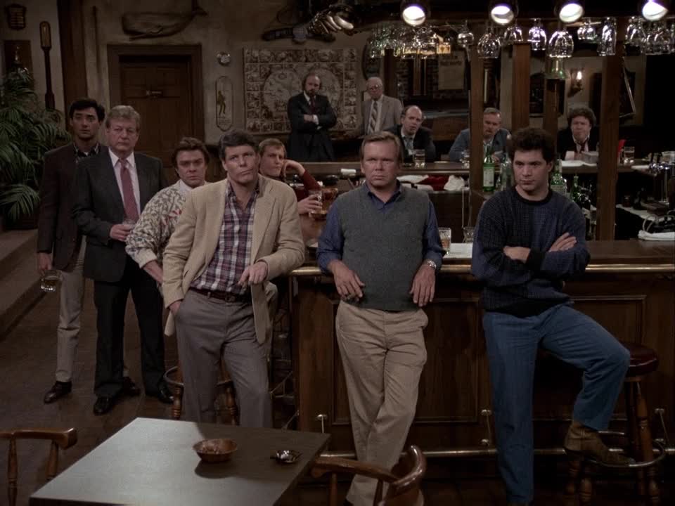 Cast: Ted Danson, Kirstie Alley, Rhea Perlman, George Wendt, John Ratzenberger