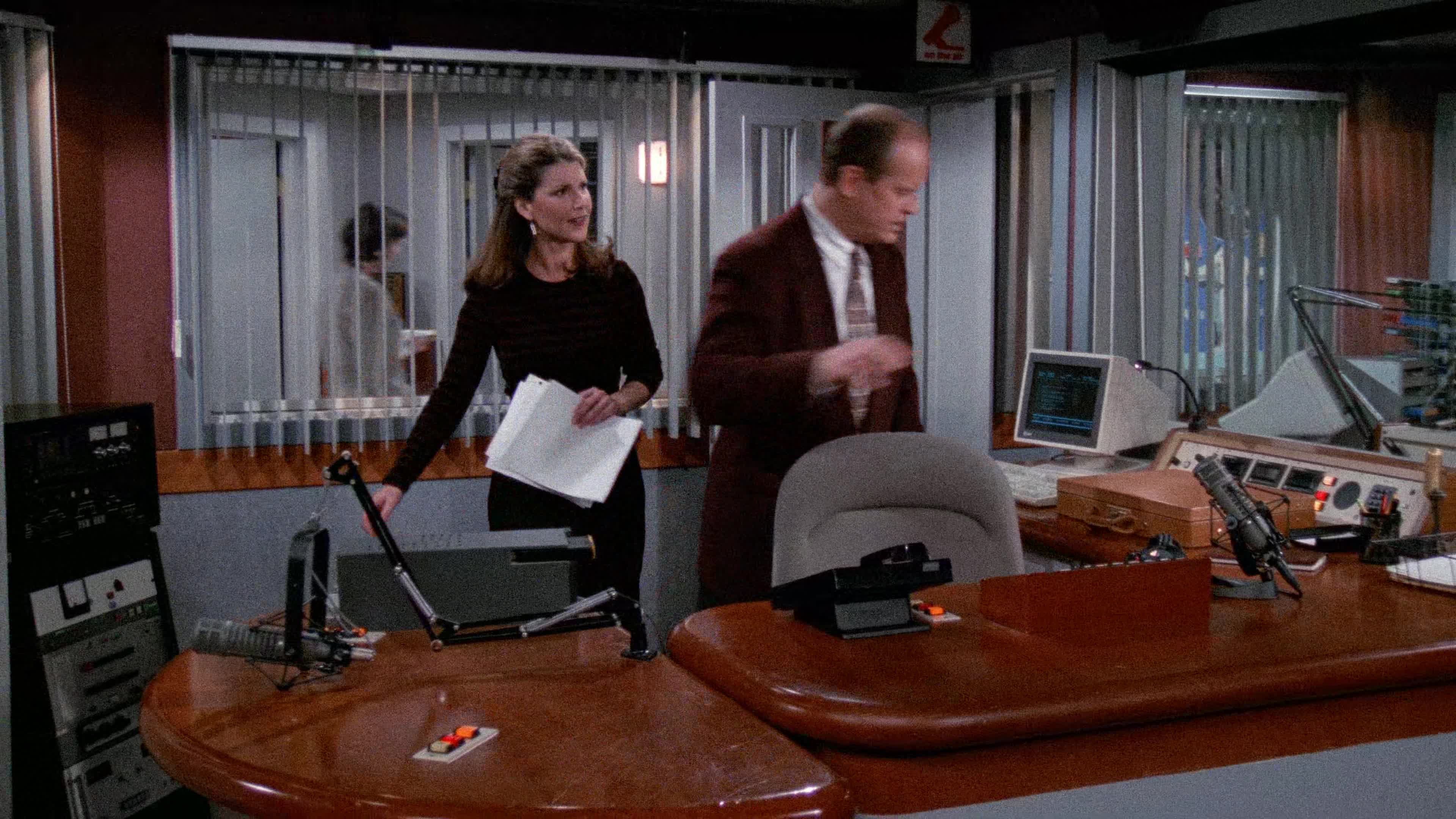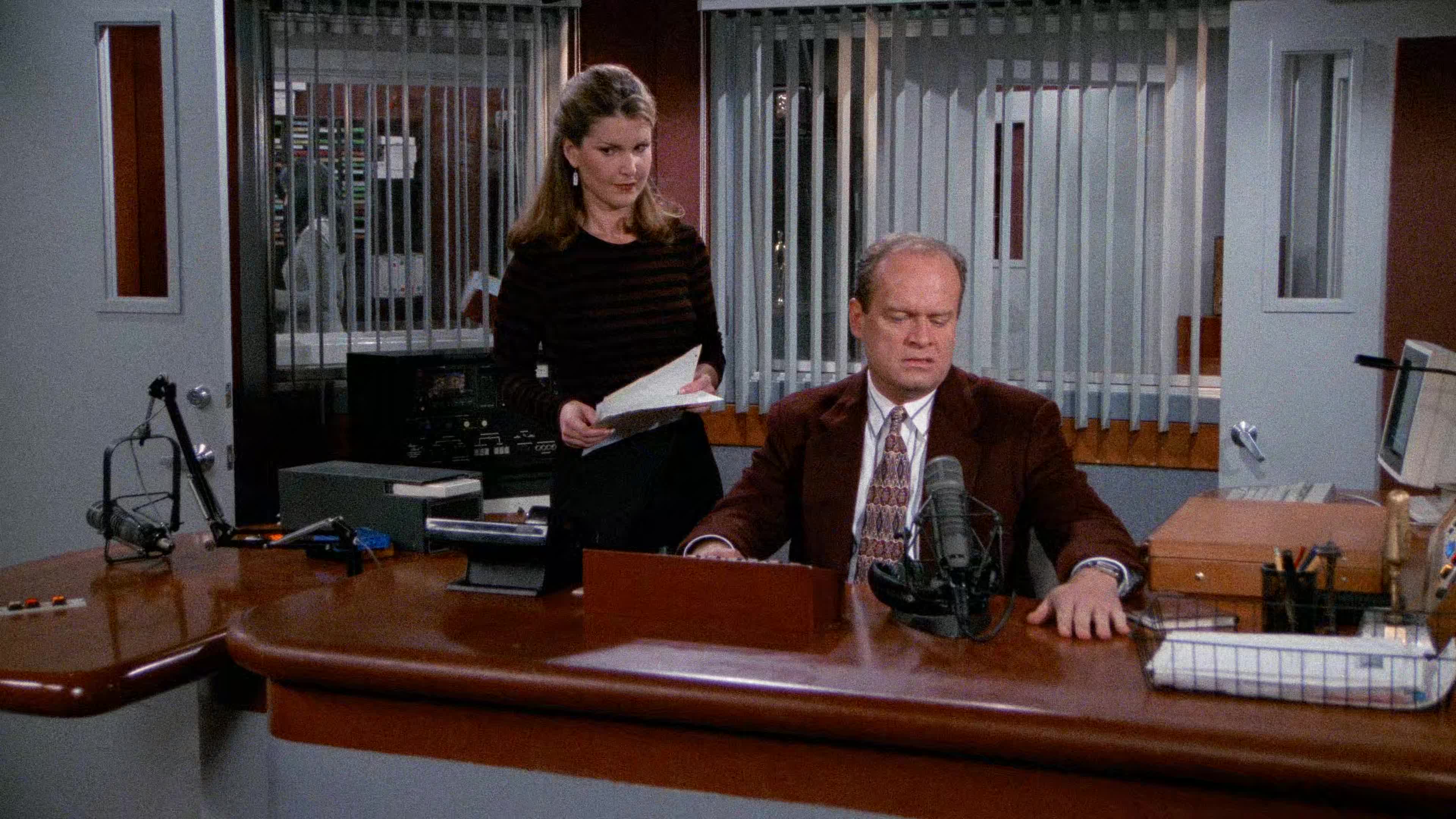 After many years spent at the “Cheers” bar, Frasier moves back home to Seattle to work as a radio psychiatrist after his policeman father gets shot in the hip on duty.