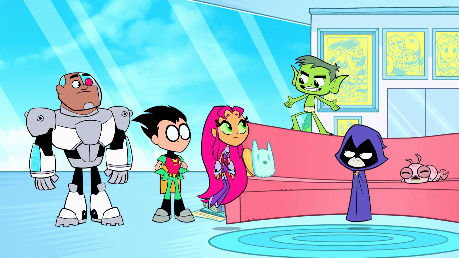 Robin, Starfire, Raven, Beast Boy and Cyborg return in all-new, comedic adventures. They may be super heroes who save the world every day ... but somebody still has to do the laundry!