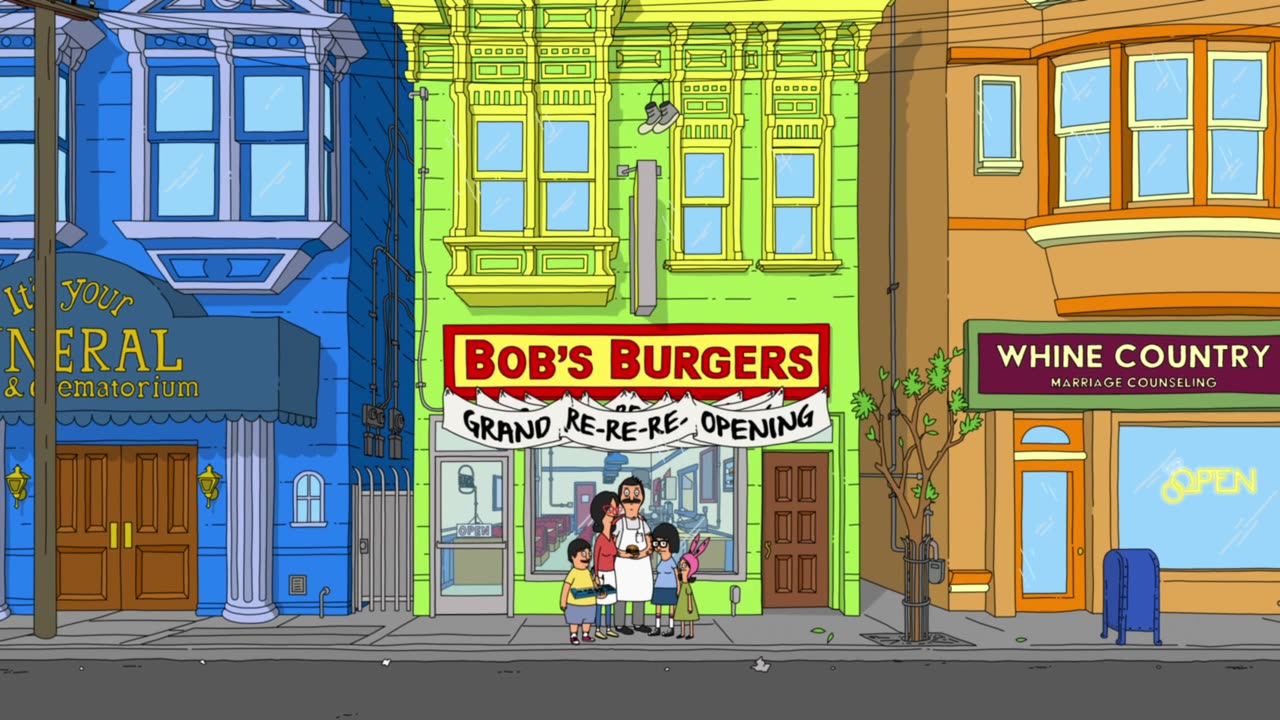 Bob's Burgers follows a third-generation restaurateur, Bob, as he runs Bob's Burgers with the help of his wife and their three kids. Bob and his quirky family have big ideas about burgers, but fall short on service and sophistication. Despite the greasy counters, lousy location and a dearth of customers, Bob and his family are determined to make Bob's Burgers "grand re-re-re-opening" a success.