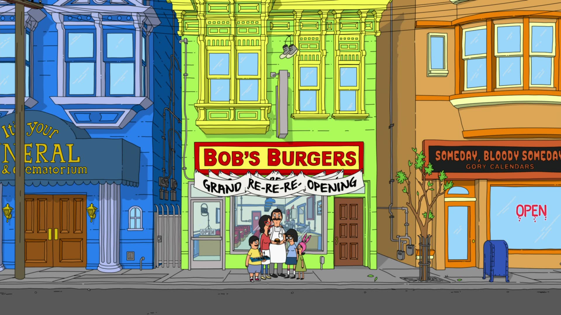 Bob's Burgers follows a third-generation restaurateur, Bob, as he runs Bob's Burgers with the help of his wife and their three kids. Bob and his quirky family have big ideas about burgers, but fall short on service and sophistication. Despite the greasy counters, lousy location and a dearth of customers, Bob and his family are determined to make Bob's Burgers "grand re-re-re-opening" a success.
